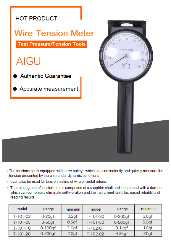 เครื่องวัดแรงตึงเส้นลวดแบบเข็มราคาประหยัด Eco-type Mechanical Tension Meter T-101-Series รายละเอียดทั่วไป: เป็นเครื่องวัดแรงตึงที่ให้ความเที่ยงตรงการวัดแรงตึงของเสันในสายการทำงานที่ผลิตในทุกชนิดของสาย (ทองแดง, โลหะ, อลูมิเนียม, พลาสติกและอื่น ๆ) เส้นด้ายและเส้นใย มีตลับลูกปืนและลูกกลิ้งติดตั้งไว้เพื่อการเคลื่อนไหวที่แม่นยำ รุ่น T1 ออกแบบให้ระบบที่สมบูรณ์ในกำจัดการสั่นสะเทือนและความต้านทานที่เกิดจากการใช้ของตัวเองเพื่อให้มีความน่าเชื่อถือถูกต้องและในการใช้งานอย่างต่อเนื่องเพื่อการอ่านความตึงมีความผันผวน รายละเอียดทางเทคนิค: ราคาสินค้า: .....กรุณาโทรสอบถาม..... ดาวน์โหลดแคตตาล็อก |